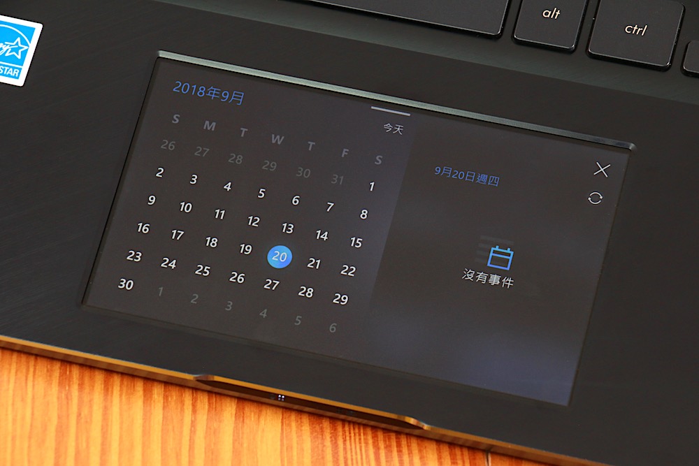 除了可以當作部分軟體的快捷鍵之外,ScreenPad 智慧觸控板還內建許多實用小工具,像是行事曆、計算機、音樂播放器…等,甚至還可以將一些常用軟體放於此處,而這樣設計的好處,不僅可以讓使用者在工作時快速計算數目或查看待辦事項,也可以讓使用者在各種使用狀態下快速開啟常用軟體,提高工作與應用效率。