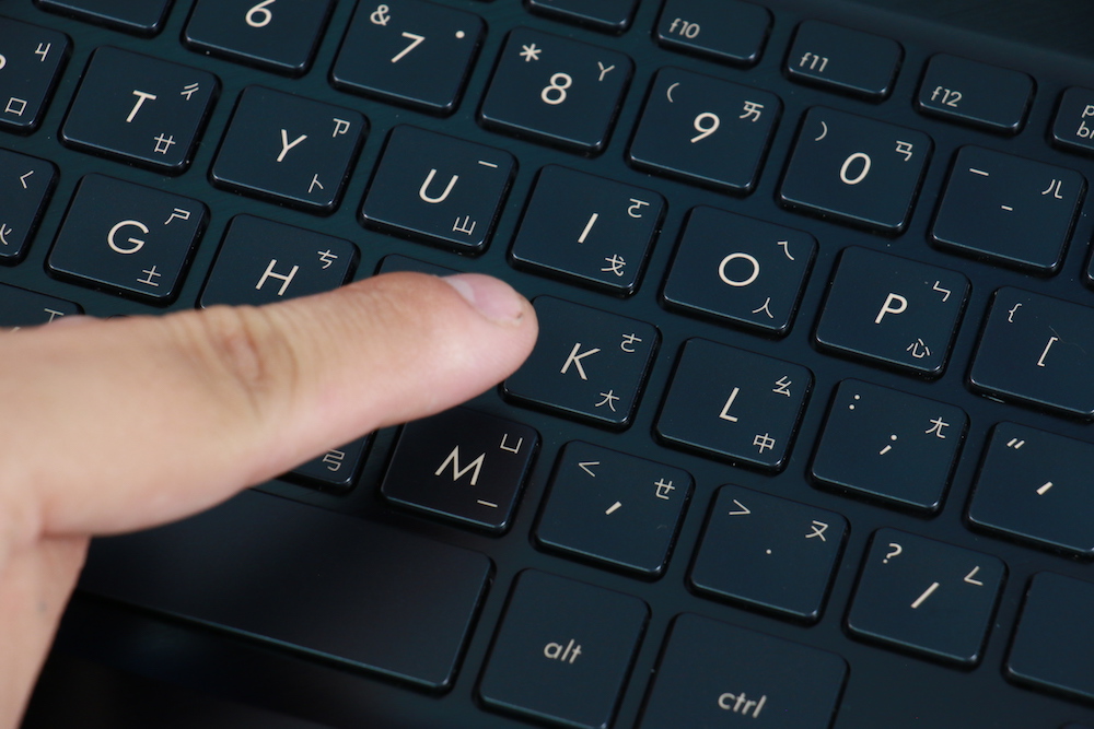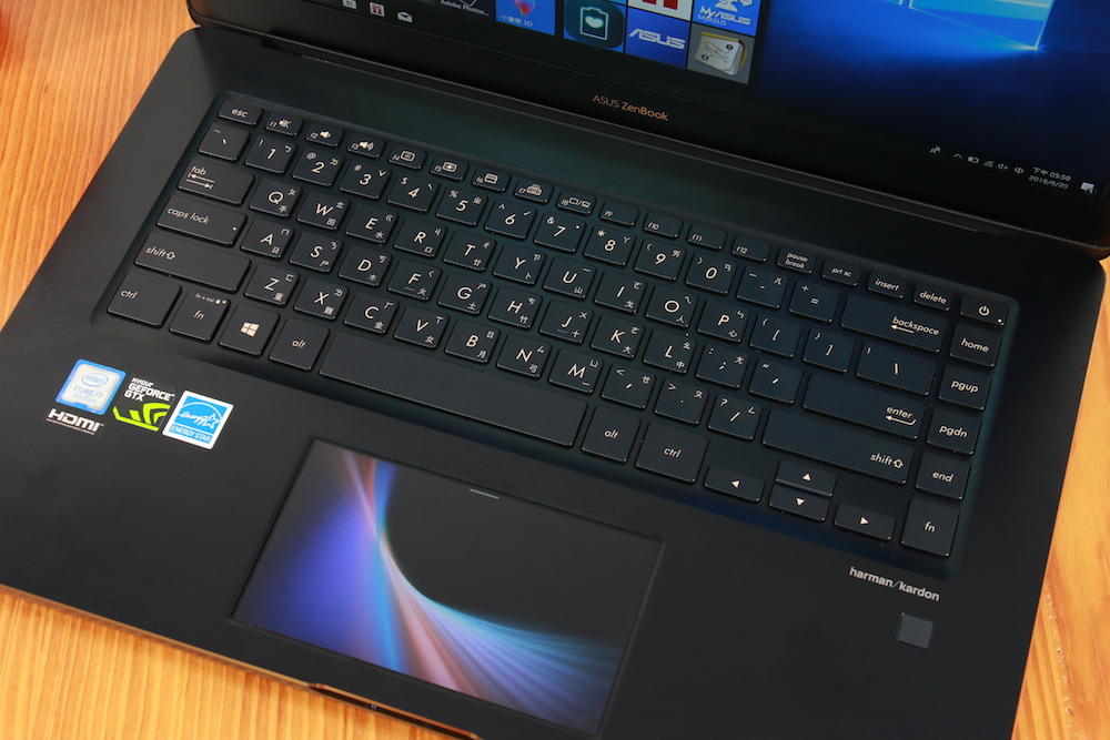 ZenBook Pro 15 配備一組全尺寸背光鍵盤,打字手感非常舒適安靜,且每個鍵帽下方都有 LED 背光模組,還具備三段亮度可任意切換,幫助經常在昏暗的咖啡廳或是挑燈夜戰的使用者,更精準的敲擊鍵盤。