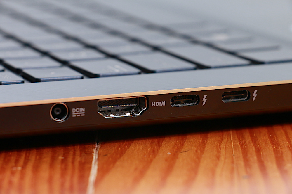 左側連接埠的部分,由左至右依序是一個 DC 電源輸入孔、一個 HDMI,以及兩個 USB Type-C 連接埠。另外,ZenBook Pro 15 還配備 802.11ac WiFi 模組,根據官方數據顯示,相較於一般 802.11n 的 WiFi 模組,傳輸速度至少快 12 倍,將提供更穩定、快速的網路連線品質。