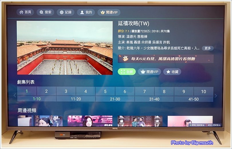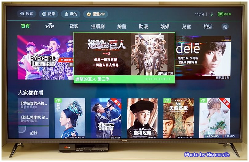 ▼愛奇藝有很多分類的影片可供欣賞,有很多都可以免費收視,也有部份是需要加入VIP才能看個過癮!不過基本上免費的就夠看很久很久了XD像是大口之前有在看的進擊的巨人這裡也有提供,透過超大螢幕、高解析度、高畫質又護眼的BenQ 電視看起來好爽快啊!