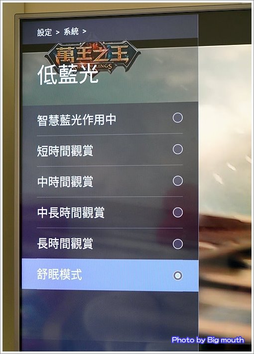 ▼這台電視不僅可以自動濾除藍光危害,保留真實色彩,讓你在欣賞高畫質的收視畫面之餘,也可以看得更舒適安心!遙控器還可以直接設定低藍光功能,一鍵搞定!
