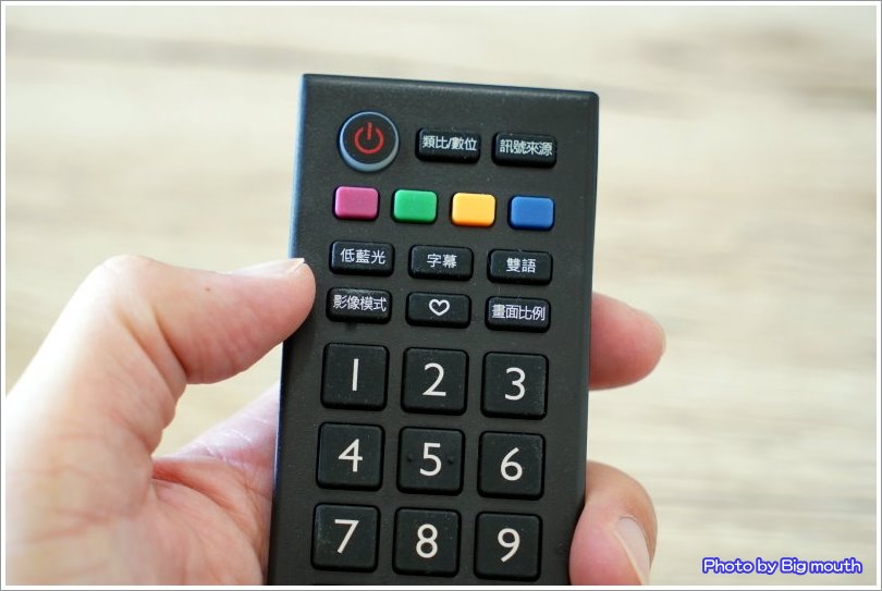 ▼遙控器的使用上也非常簡單直覺,通常會用到的就是電源鍵、訊號來源、低藍光、影像模式、畫面比例、選台&音量、主頁(可連接愛奇藝、LiTV),幾乎照著上頭的標示去操作即可!