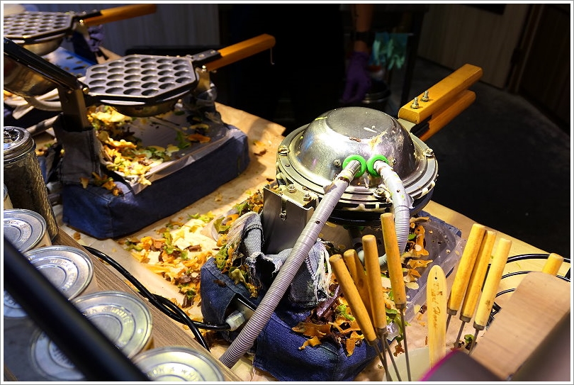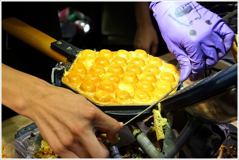 ▼這裡的雞蛋仔都是現點現做,採用的是蜂巢式的雞蛋仔機,這樣製作出來就是一整片的雞蛋仔囉!