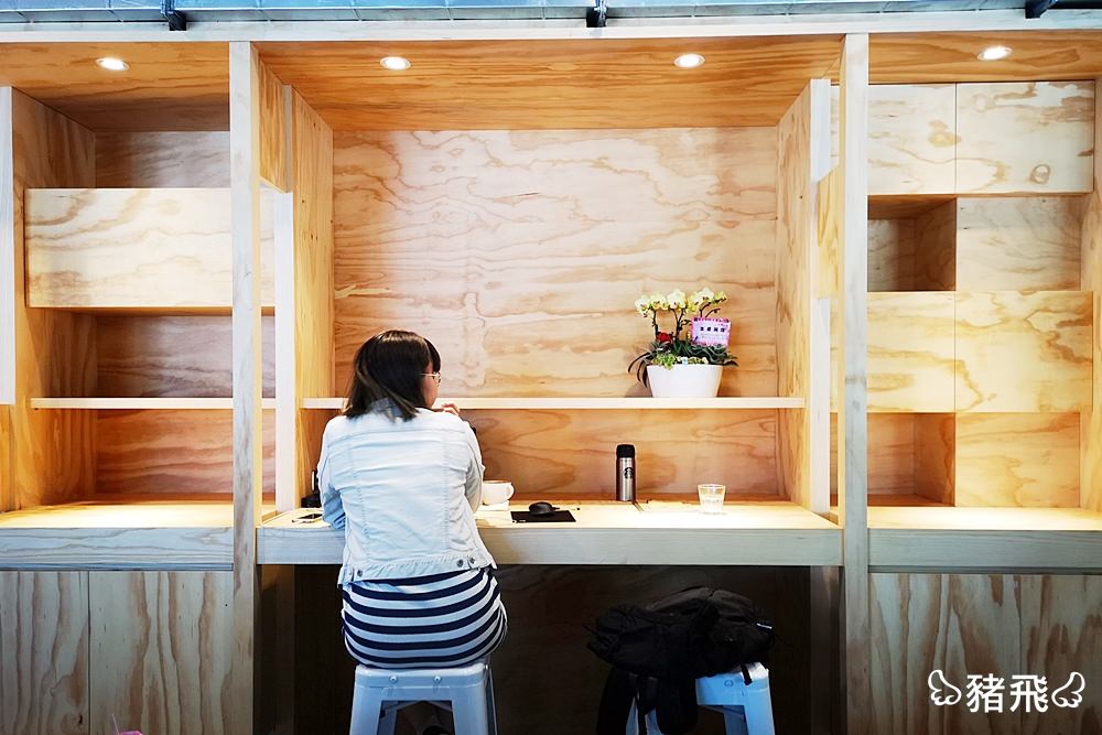 沿著走道,左邊靠牆用了超大座的木造書櫃區裝置,還貼心附插座,非常適合一個人來這裡喝咖啡放空,當然也很適合情侶窩在這兩人世界裡喝咖啡吃美食。