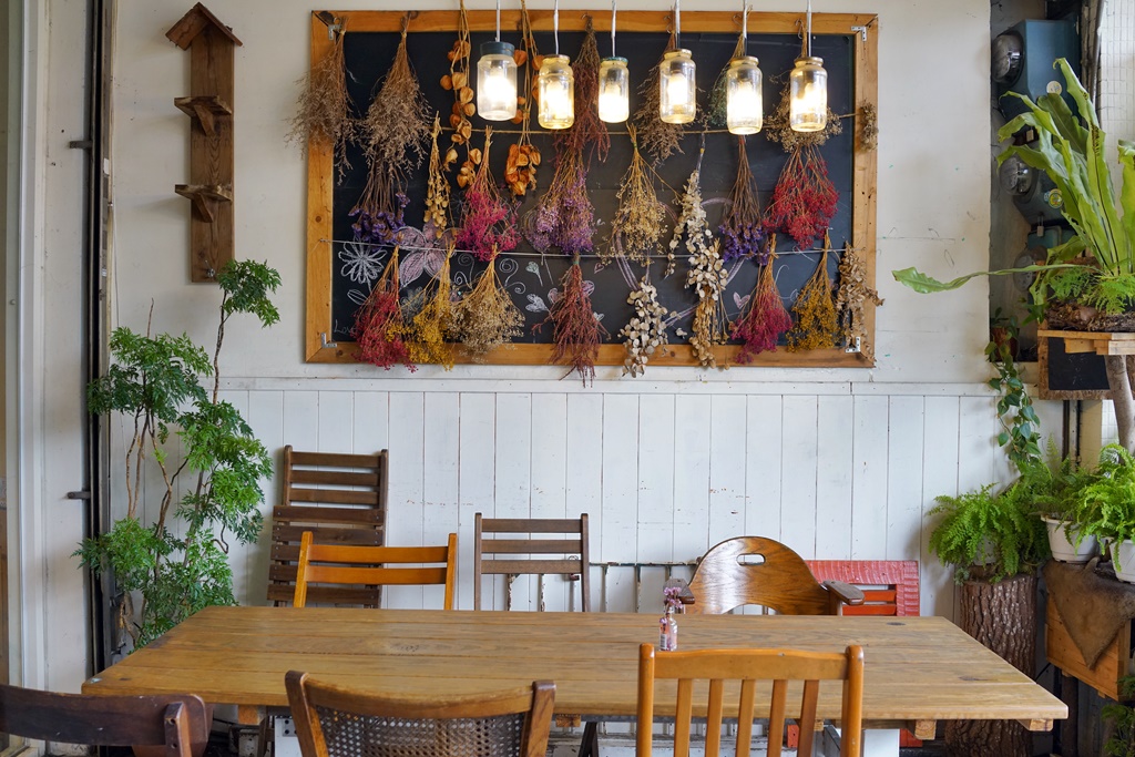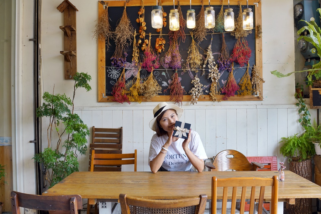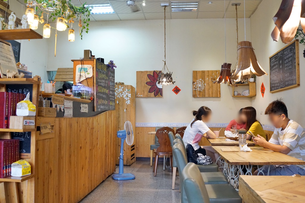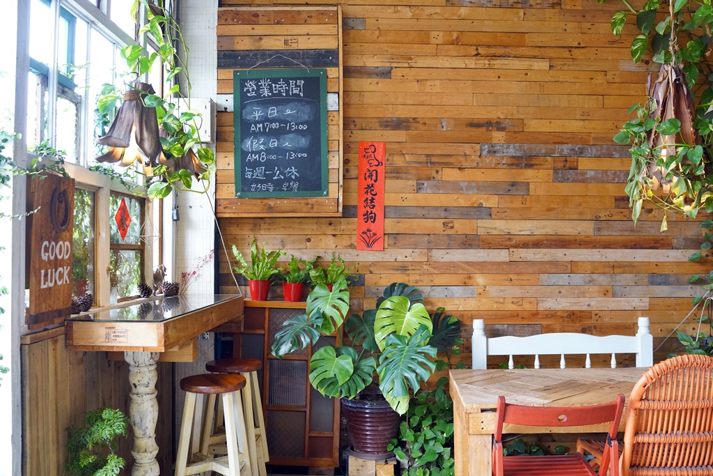 分成室外與室內,整體空間不大,也難怪那麼容易客滿,外面有兩大桌,自然光搭配乾燥花、植栽,拍照效果很好,要不是天氣太熱,真心覺得坐在外面還不錯,室內有冷氣,但座位間距比較小,畢竟只是一間早餐店,店家提供早餐的服務,不是可以久坐聊天的咖啡廳唷!