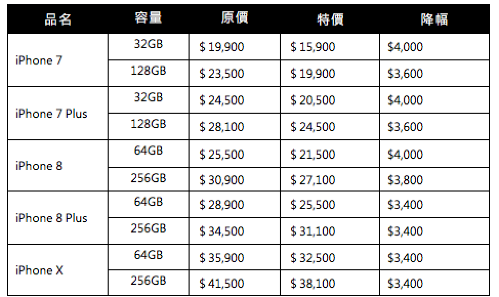 根據蘋果台灣經銷德誼數位提供的資料,現在除了能夠讓消費者預購 iPhone XS 系列新機以外,消費者還能夠以 64GB NT$32,500 元(原價 NT$35,900 元)、256GB NT$38,100 元(原價 NT$41,500 元)的優惠價格購買到全新的 iPhone X!
