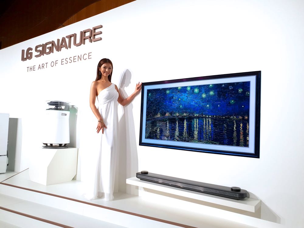 LG SIGNATURE 首波將在台推出包括電視、冰箱、洗衣機三款產品。LG SIGNATURE OLED TV W8 提供身歷其境的絕美影音體驗,極纖薄的面板設計,與居家牆面無縫融合,更利用可貼合牆壁的線材完美連結 Sound Bar,在開啟電視時 Sound Bar 喇叭也會隨著升起,SEEING IS BELIEVING,簡約卻震撼人心。
