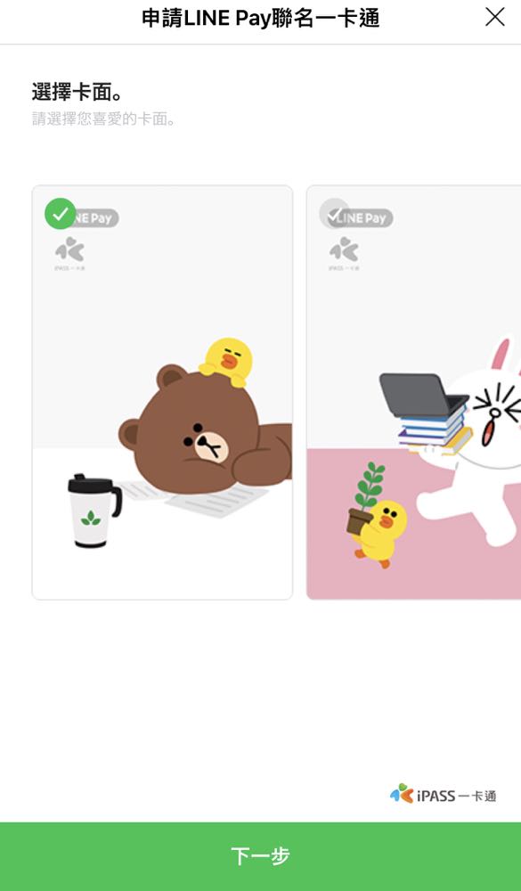 等到註冊完畢,對許多朋友來說相當重要的一步,就是選擇想要的「LINE Pay 一卡通」實體卡片囉!