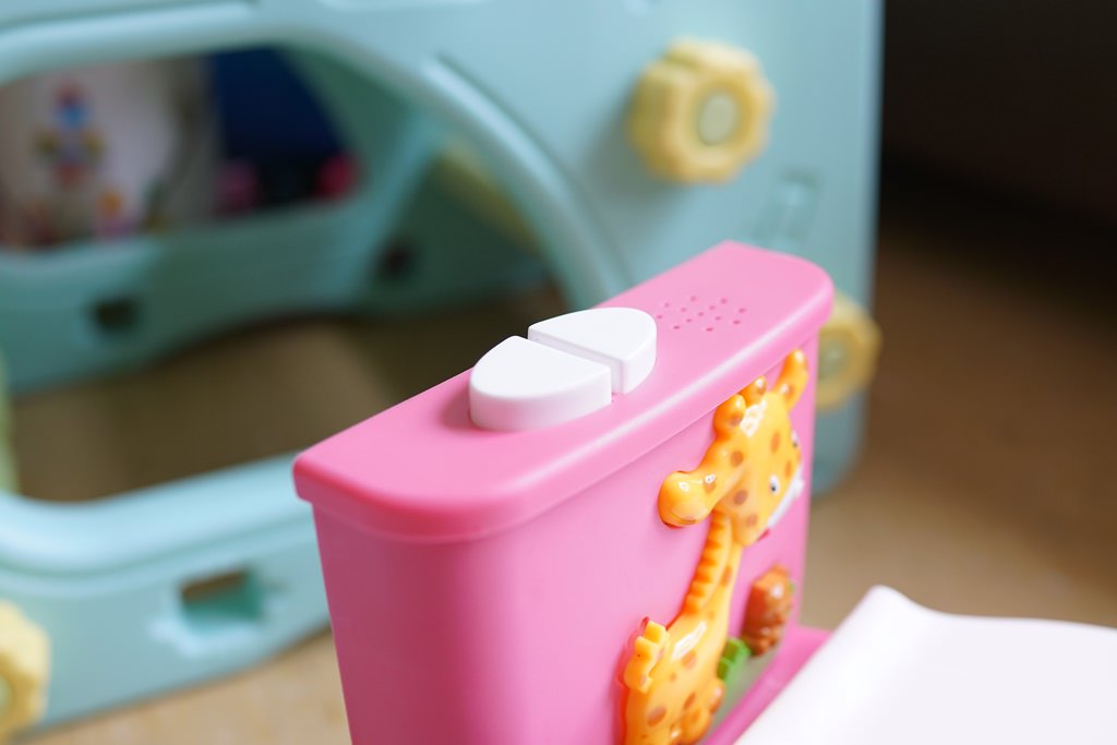 另外這款馬桶連沖水按鈕都有,可以教小孩上完廁所記得要沖水,只要一按下沖水按鈕就會唱歌,內建12首音樂,每次上完廁所沖水都有歡樂驚喜。