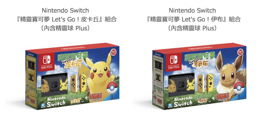 根據 Nintendo Switch 台灣官網的消息,這款 Nintendo Switch 主機同梱的特別組合將從 11 月 16 日起發售。組合內容包括有Nintendo Switch 主機(含皮卡丘/伊布配色的 Joy-Con )、《精靈寶可夢 Let’s Go!皮卡丘》或《精靈寶可夢 Let’s Go!伊布》遊戲軟體,以及「精靈球 Plus」。