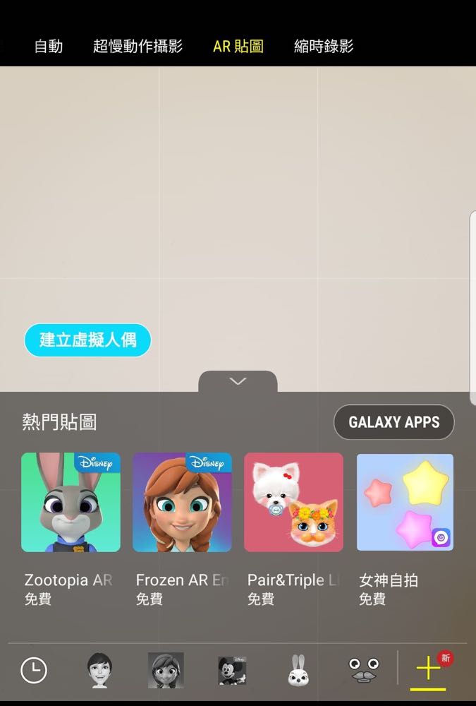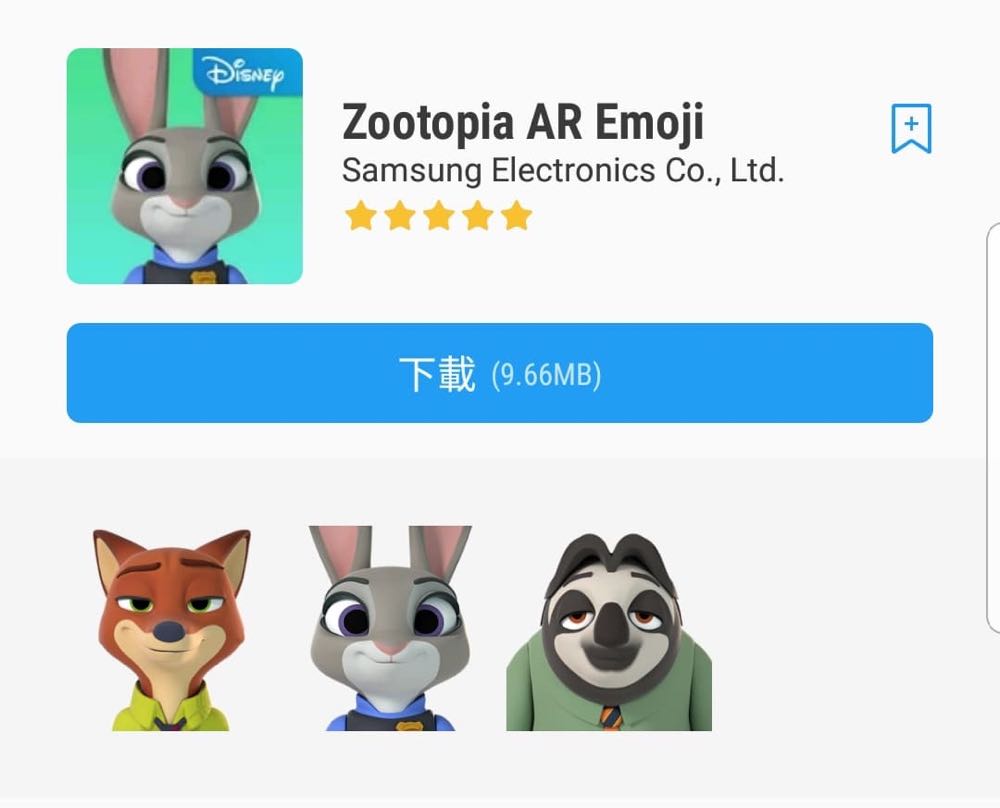 三星的 S9 系列或 Note 9 用戶現在開始都能在「相機」>>>「AR 貼圖」>>>「+」 來下載「Zootopia AR Emoji」。