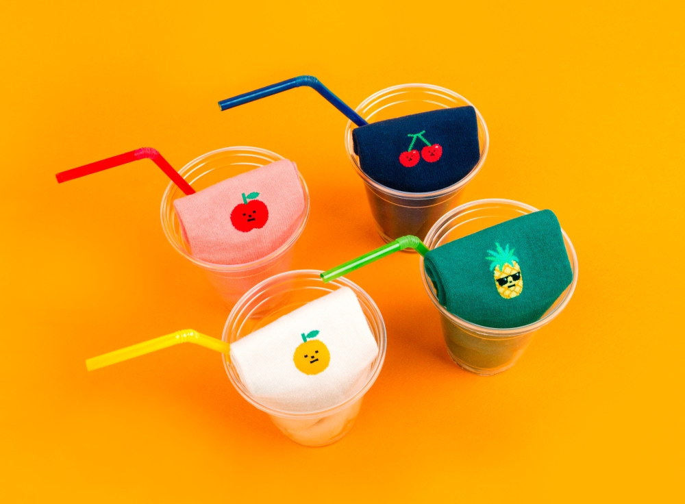 幻化成食物的黏黏小怪物,每個表情都超幽默的,小巧精緻的表情,在socks appeal 的超強製襪技術下,每個細節都沒有遺漏掉,兩側的腳上不同的神情與設計,在無趣的生活中處處需要這種出乎意料之外的幽默感:)。