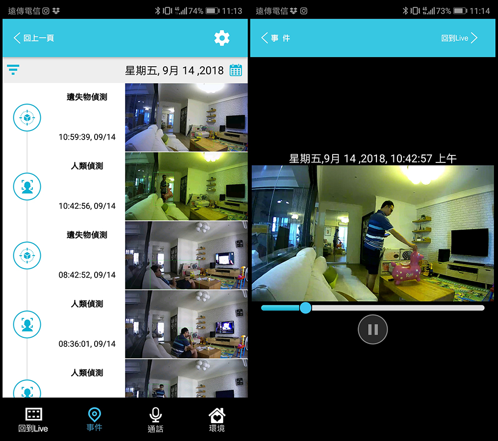 而且我點進去就可以馬上看到這個事件的錄影,一切都會存在「事件」裡面,還有清楚的時間軸可以看到。