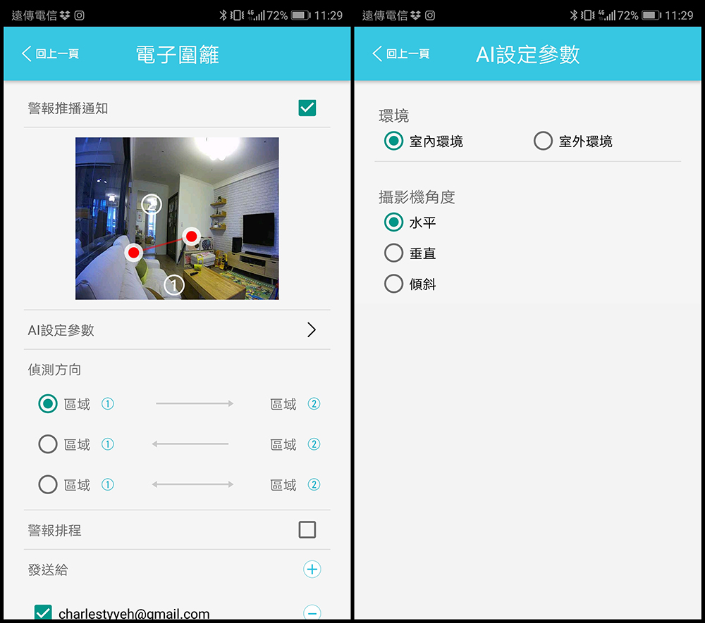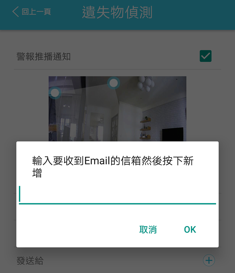 同時我還可以設定用 Email 通知其他聯絡人,或許我們家恰嫂也很關心這隻跳跳馬(會嗎?),然後我就把警報通知一起加進去,在管理方面真的很方便又簡單,完全靠個 APP 就可以搞定了。