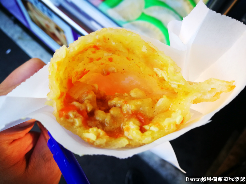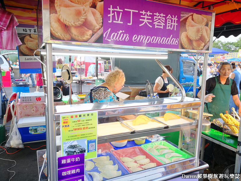 龍潭觀光夜市異國美食拉丁芙蓉餅,外觀看起來有點類似超大炸餃子,外國媽媽把韭菜餅皮和家傳特殊拉丁香料,結合就變成很特別的拉丁芙蓉餅,每天現點現做外皮就像炸餃子又脆又Q,內餡很香風味獨特不妨可以嚐鮮看看。