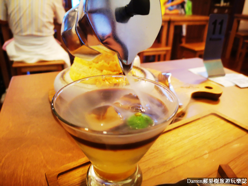 咖啡上桌服務人員會把乾冰倒入咖啡內,製造出雲霧圍繞的山嵐感覺,兼具視覺美感走浮誇系路線非常好拍XD。