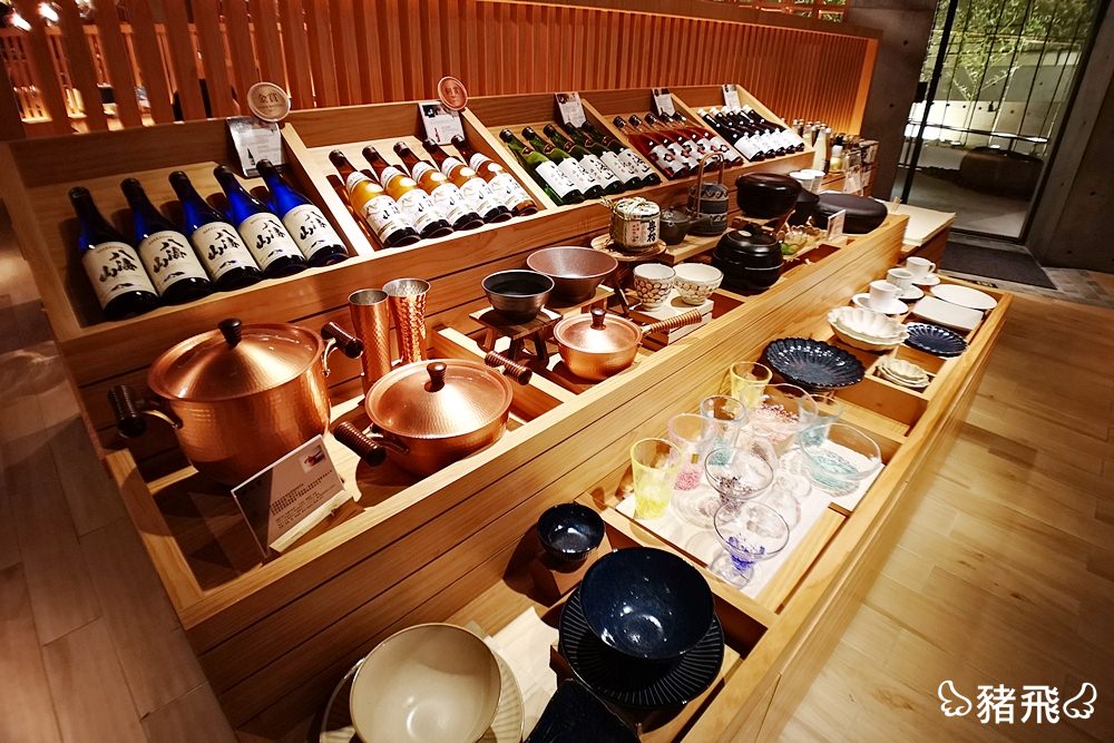 入口處還特地設計日本餐具和日本酒的販售展示櫃。