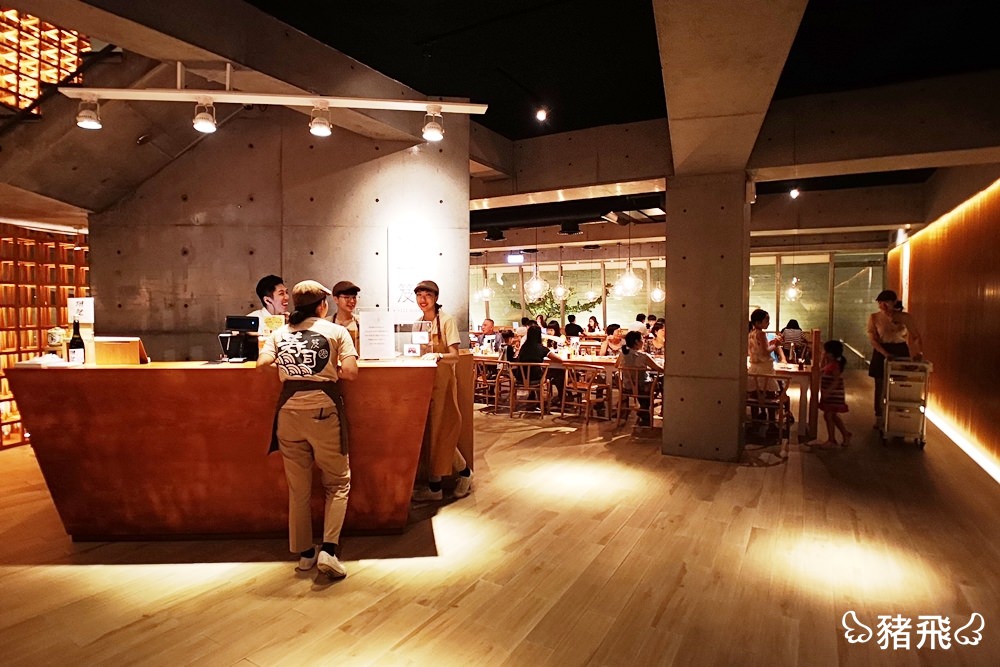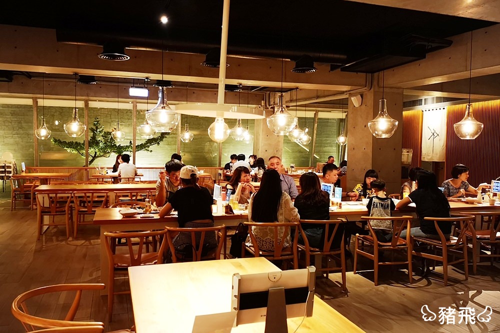 入門後看見的是接待櫃檯,用餐空間分為左右兩側,左邊適合多人的大長桌,右邊則是人少的小方桌為主,空間寬敞,座位間沒有額外的隔間,是年輕時尚的熱鬧用餐環境。