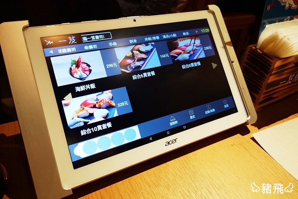 點餐方式是用平板自行點餐,操作介面很簡單,美美的圖片配價格,喜歡什麼點一下就搞定,從確認點餐到上桌時間也飛快!大概15分鐘內就通通上齊了。需要芥末、薑片、濕紙巾...也是平板上點選就行,服務人員會立馬送到桌邊。