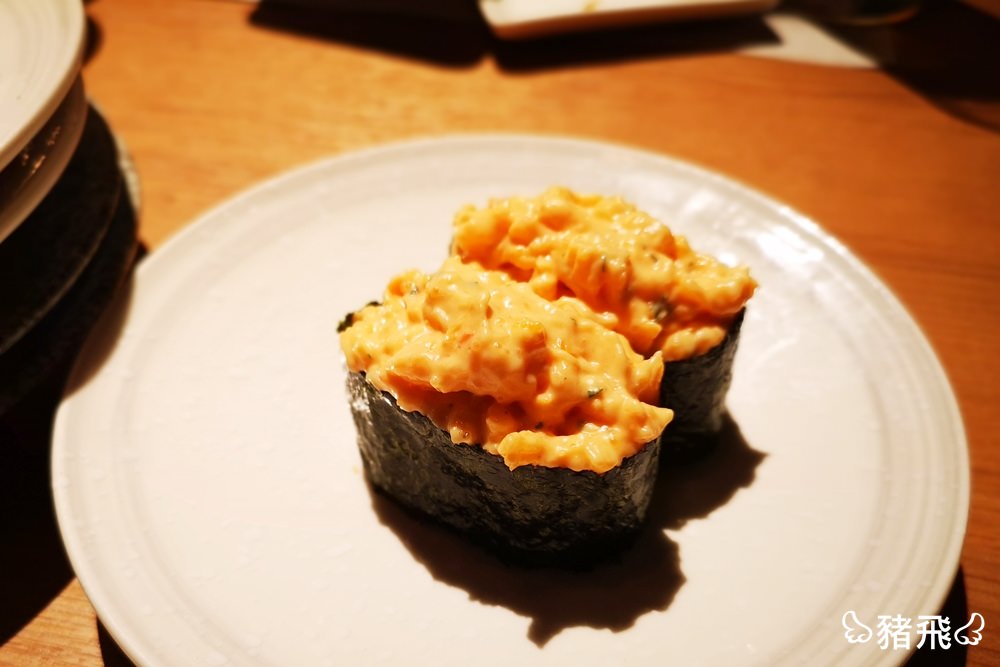 第一次吃到杏鮑菇握壽司,口味挺特別的,吃起多汁軟嫩。