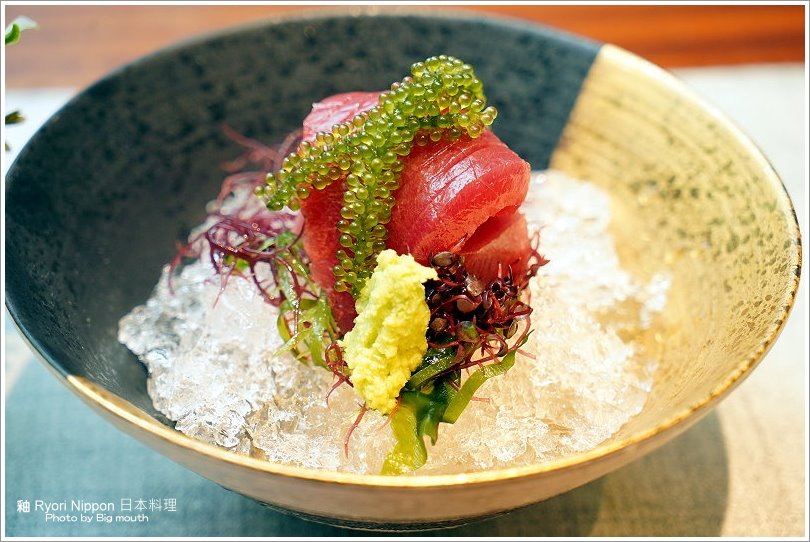 ▼黑鮪魚大腹、中腹佐海葡萄,不僅吃起來肉質超級柔嫩香甜,搭配海葡萄更增添微微鹹香與爽脆的口感,層次非常多元!