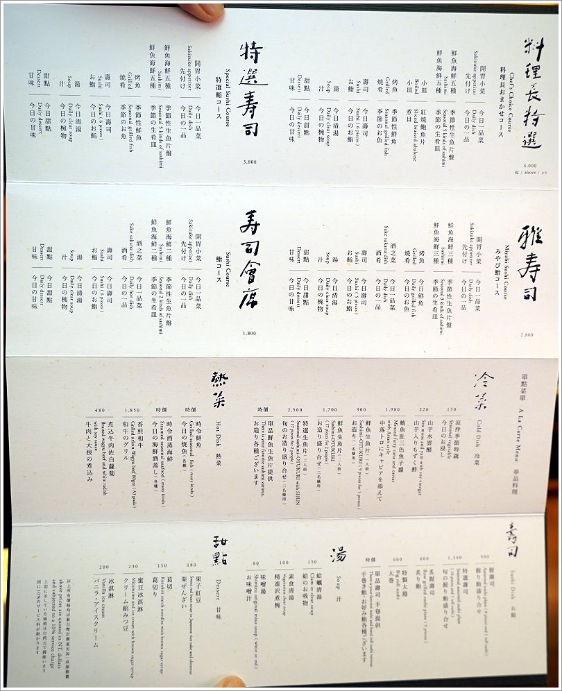 ▼另一位日籍廚師、也是副料理長的橋本和弘則是專攻江戶前壽司與刺身,不僅曾經任職於野壽司、野村壽司,在台灣日本料理界也有一定的知名度!橋本副料理長最自豪的一件事就是他可以返轉三次就完成完成一貫壽司的捏製,因為捏製時間越長,醋飯就越不容易鬆軟;坐在板前不僅可以看見橋本師傅精湛的手藝,還能看見師傅們對每道餐點內容的堅持與講究!