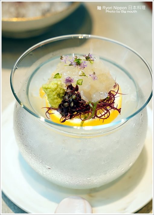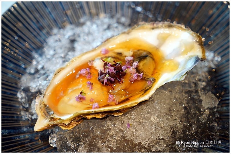 ▼特別採用有「蠔生勞斯萊斯」之稱的法國吉拉多生蠔上面搭配土佐醋做成的晶凍、紫蘇花,一口吃下不僅吃得到鮮嫩軟滑的鮮美滋味,搭配微微酸香、帶點冰涼口感的土佐醋更加清爽提味!