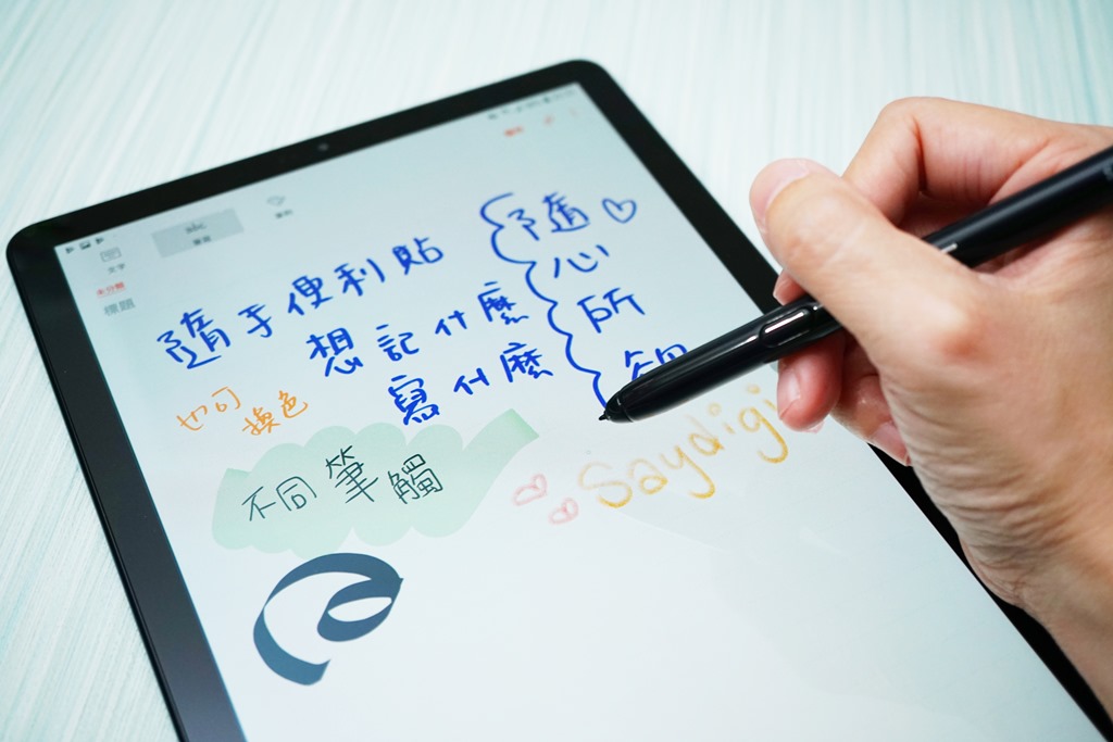 由於 S Pen 筆芯採用橡膠筆蕊,寫起來能有一定的摩擦力,但摩擦力又不會過頭到難以拖曳,還原的很接近真實的書寫體驗,更棒的是,雖然是觸控筆,不過 S Pen 不需要充電,隨時拿起來就可以隨時書寫,愛怎麼寫就怎麼寫完全不受電力侷限。