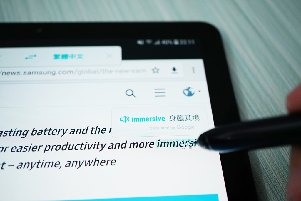 就以 Kisplay 最常用的懸浮翻譯功能為例,由於時常需要在國外網站查資訊,過往的查資料方式是一頁開著原文,一頁開著 Chrome 的全頁翻譯,遇到看不懂的字再左右對照推敲原意,不過有了懸浮翻譯功能後就不用這麼麻煩了,在看外文時遇到不懂的單字只要將 S Pen 指過去就能迅速得到翻譯,大幅增加閱讀的速度,S Pen 還提供了整句翻譯功能,在一個句子有多個不懂的單字時,利用整句翻譯就能快速掌握文意,非常方便。