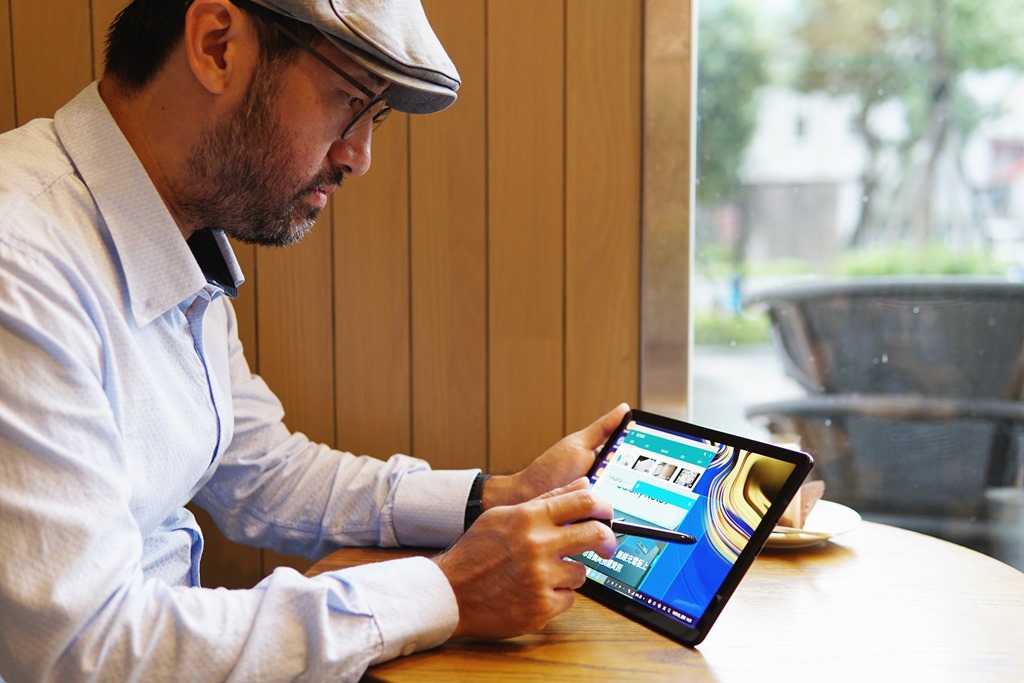 Samsung Galaxy Tab S4 具備四組 AKG 調校的立體聲喇叭以及杜比環繞立體聲音效,加上持續播放影片長達 15 小時的續航力以及讓觀影體驗更好的窄邊框設計,都是 Galaxy Tab S4 很適合作為影音平板使用的特點;除了娛樂用途之外,Samsung 也幫 Galaxy Tab S4 設計了 S Pen,具備真實的筆觸可以拿紙筆寫字那般在平板上隨手寫下筆記,還有懸浮翻譯功能加速使用者查看外國語言資料時的閱覽速度,在 Galaxy 手機上有的 Samsung DeX 功能現在 Galaxy Tab S4 也可以切換使用,可以依照不同的狀態隨時切換為平板模式、Wacom 繪圖板模式、觸控板模式、鍵盤模式等等,讓平板更彈性的作為生活的輔助工具,同時儲存在 Galaxy Tab S4 裡的資料也能透過像是虹膜辨識這樣高安全性的辨識方式來保護,談了這麼多,以下就來分享我們與 Samsung Galaxy Tab S4 相處後的使用心得吧!