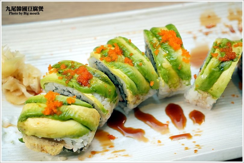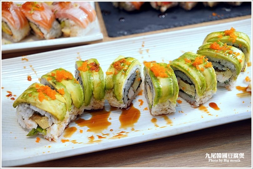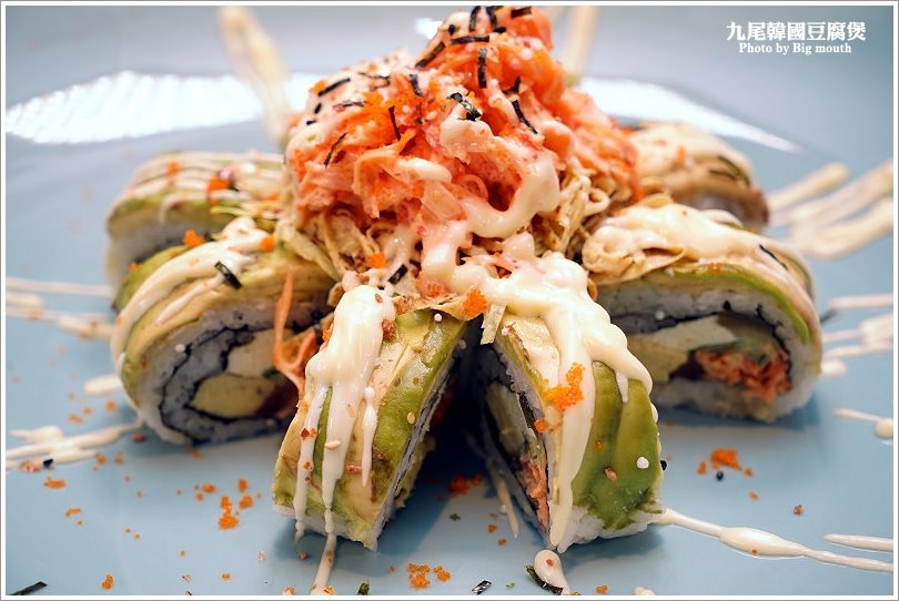 ▼火山卷是由酪梨、奶油乳酪、蟹肉加上特製醬汁而成,上頭再放上蟹肉沙拉與蛋絲,看起來真的很澎湃!吃起來口感鮮美又香甜,搭配百香果、美乃滋所調和的醬料,吃起來滑順又帶點果香氣味,一整個清爽迷人!