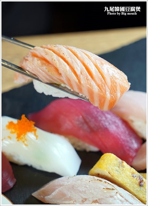▼小確幸握壽司,也是當天有什麼魚貨就出什麼握壽司,所以每次享用到的不盡相同唷!一旁還有搭配玉子燒、甜薑,很適合搭配享用,相當解膩!