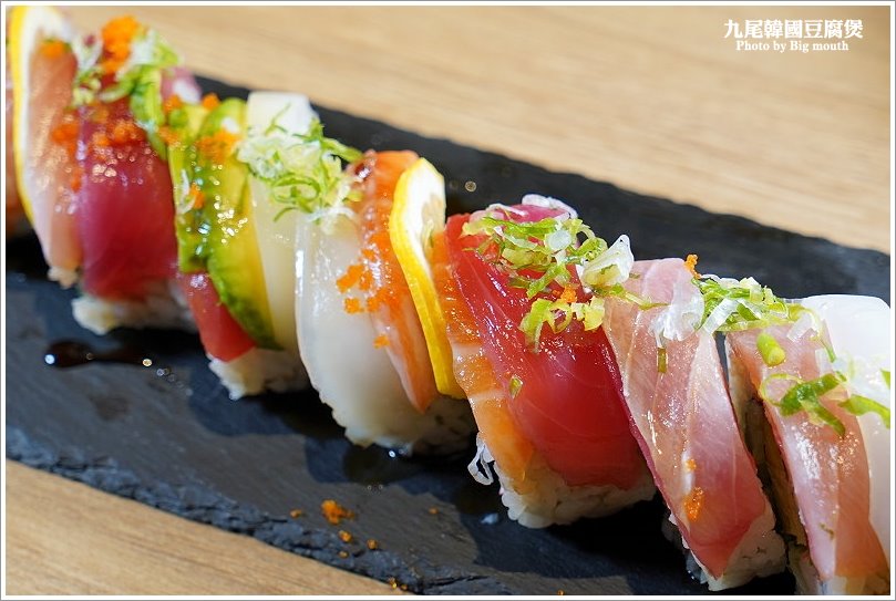 ▼彩虹卷,裡頭有鮪魚、鮭魚、旗魚、酪梨、特製醬汁等,每一口都能吃到不同的生鮮魚片,吃起來的滋味都不一樣,讓人驚喜連連!