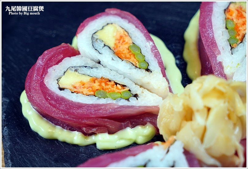 ▼愛心卷是由鮪魚、酪梨、玉子燒、蟹肉搭配哇沙米、美乃滋所調製的醬汁而成,吃起來不僅有蟹肉、酪梨的甜美,加上鮪魚的鮮美,強烈推薦一定要搭配哇沙米美乃滋,更加凸顯獨特的風味!