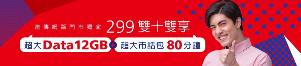 - 本方案月付$299,限搭配新絕配399資費,需簽約24個月毋需預繳,每月月租折扣100元,合約期間享網內免費,網外每月贈送40分鐘,網外每月贈送80分鐘,每月上網傳輸量12GB,超過傳輸量後即降速至128kbps,用戶可選擇加購上網計量包。