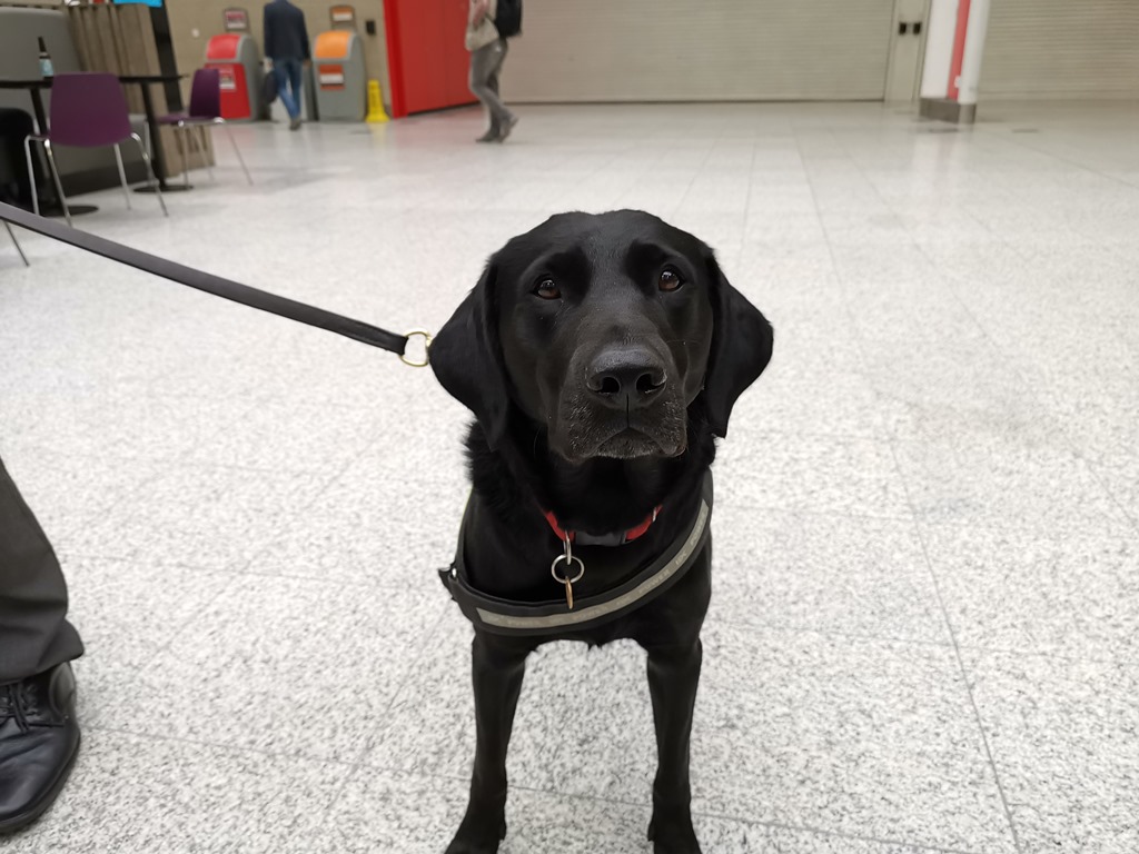在記者會場進行維安工作的偵查犬,拍攝時還會看鏡頭,超專業。