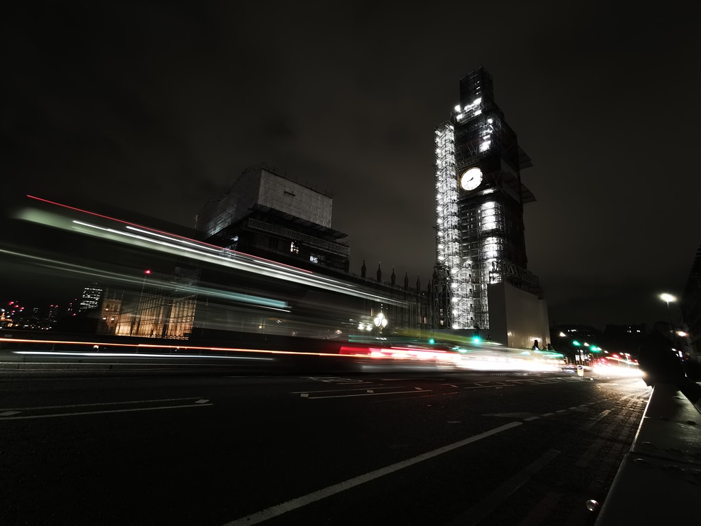 最後,因為大笨鐘在維修中,所以用了專業模式來進行長曝光,看看搭滿鷹架的大鐘塔有沒有好看一些。