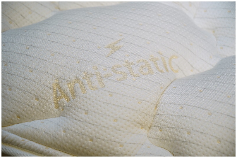 ▼最特別的是它的表布是採用天絲混入抗電磁波的纖維織品,不僅可以抗電磁波、防靜電,而且手機就算是放在床邊桌上也比較不會有疑慮,就可以安心入眠!