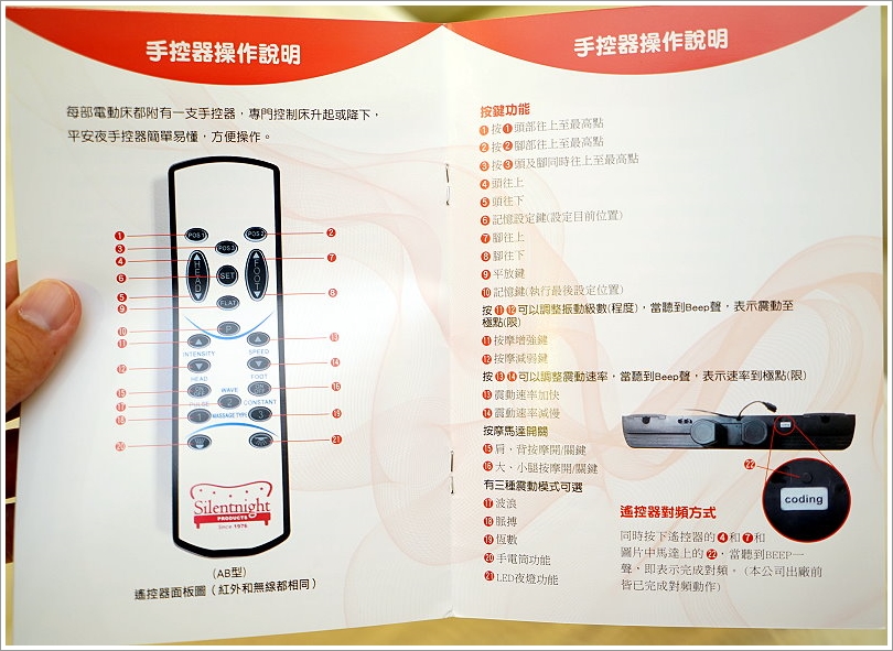▼裡頭還有詳細的操作說明,只要是微笑線以上都是調整頭、腳的角度,中間區域則是按摩,微笑線以下則是LED夜燈功能,了解之後操作起來也算是滿簡單的!