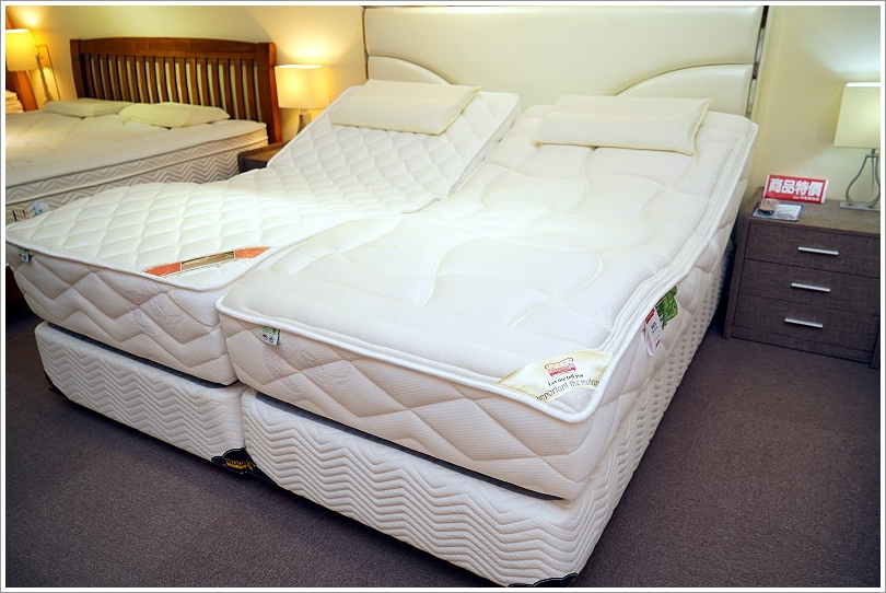 ▼首先我們先來看看他們家主打的新式電動床吧!他們家的電動床跟一般不一樣的地方在於只需要將床墊換成電動床即可,不需要像傳統的電動床一樣上下都得一次換掉,也就是說床組還可以留著用,上頭的床墊就是電動床啦!既不佔空間也不用擔心會浪費床組,真的很方便呢!