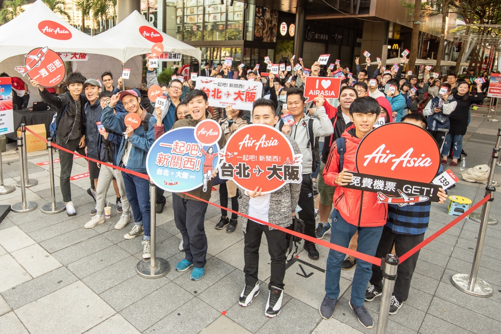 連續十年奪得Skytrax「世界最佳低成本航空獎」的AirAsia,今(29)日宣布將以東南亞低成本航空霸主之姿,正式進軍台灣直飛東北亞市場,首發航線將利用延遠權運行每週四趟「吉隆坡-台北-大阪」(週一、二、三、五)航班,並以空中巴士A330飛行此航線,同時AirAsia也是唯一以廣體客機A330-300營運「台北-大阪」航線的低成本航空公司,提供每航班367個或377個座位。為了歡慶首條日本航線即將開航,AirAsia今在台北ATT4FUN大方送出400個「台北-大阪」免費機位,現場一早便吸引大批熱情民眾聚集排隊搶票,同時也宣布明日(30)日中午12點起將正式在官網開賣,單程未稅最低只要新台幣1,388元起,豪華平躺座位單程未税最低也只要新台幣3,388元起,出發日期為2019年1月30日至2019年3月30日。