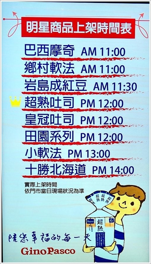 ▼另外還有提供各款明星商品上架時間表,喜愛的朋友可以看準出爐時間趕快去搶購,熱呼呼的麵包最好吃了!