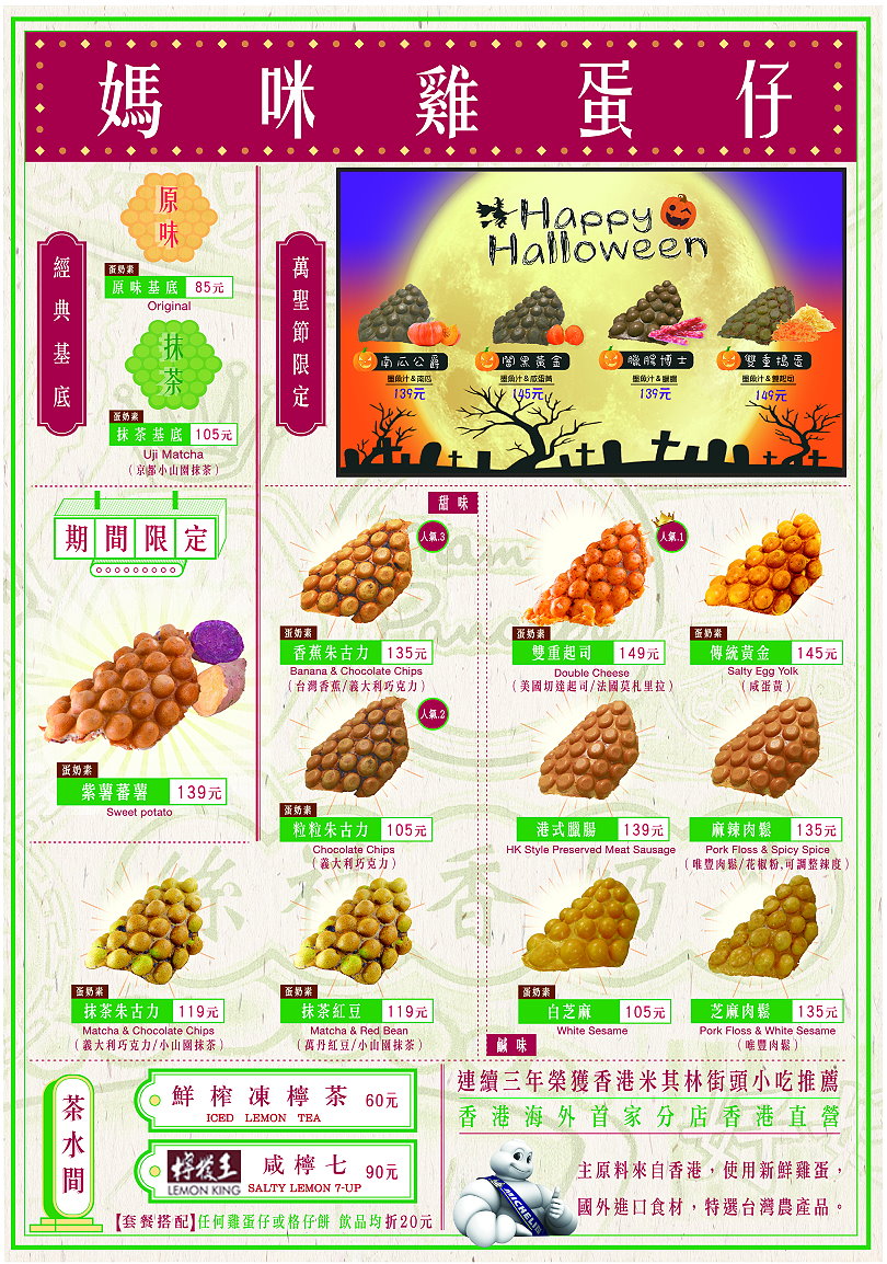 ▼來自香港道地的米其林推薦小吃「媽咪雞蛋仔Mammy Pancake」也來快閃啦!即日起到2019/2/28,都可以在板橋大遠百10樓吃到美味的雞蛋仔,不僅有萬聖節限定的黑嚕嚕墨魚口味,還有榮獲米其林肯定的紫薯番薯口味,加上其他鹹甜口味通通都可以一次滿足!如果真的來不及在快閃期間內吃到也可以到西門町電影街的本店享用,選擇更多元豐富!