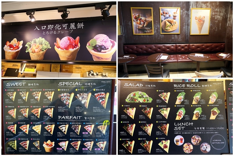 ▼他們家可麗餅的口味相當多元,選擇還不少,一旁也有座位區可供內用;如果硬要說它是逛街美食也是可以,只是大口覺得他們家的可麗餅適合坐下來慢慢品嘗,或是先享用完再來逛街,才不會邊走邊吃、吃得很狼狽!