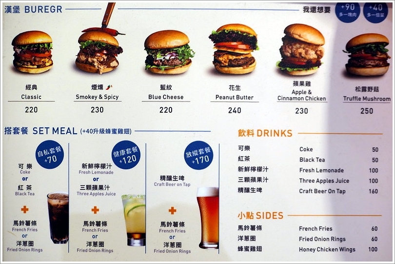 ▼他們的漢堡選擇還不少,另外還可以加價升級肉片或是配料,另外也可以搭配套餐,感覺相當有飽足感啊!