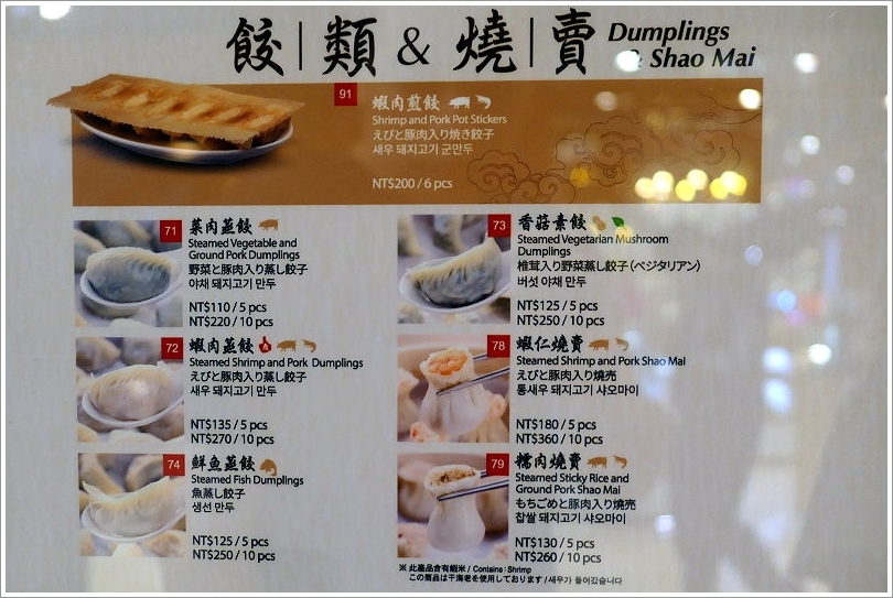 ▼另外也有餃類跟燒賣,他們家的餐點選擇還不少,雖然漲價了但美味的程度與良好的服務還是吸引不少饕客前往!另外也有餐點外帶服務,想要買回家享用也沒問題!
