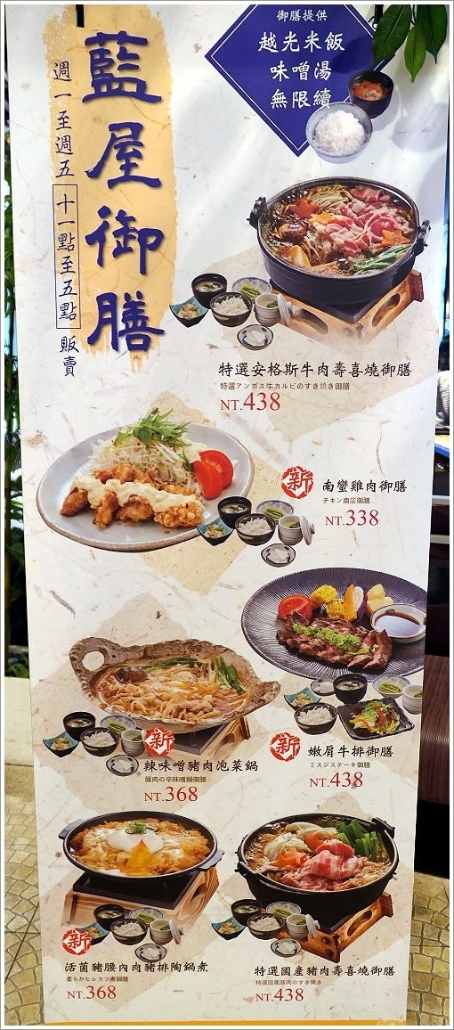 ▼平日中午到下午五點還有提供藍屋御膳,不管是越光米飯還是味噌湯都可以無限續加,真是太棒啦!