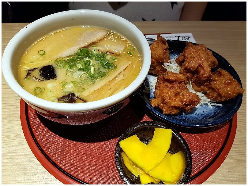 ▼另外一款則是味噌豚骨拉麵搭配雞唐揚,一旁還有提供小菜可供開胃解膩!