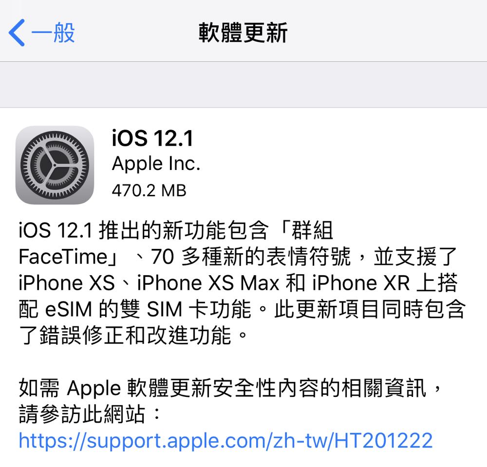 緊接著昨天 Apple 為大家帶來精彩的新品發表後,iOS 12.1 也迅速的開放用戶更新,將為 iPhone 與 iPad 帶來「群組 FaceTime」功能以及超過 70 種全新的表情符號。FaceTime 更是加入支援最多 32 個人的「群組 FaceTime」功能。如果是 iPhone XS、iPhone XS Max 或 iPhone XR 的用戶還能擁有即時預覽的「景深」控制功能以及雙 SIM 卡服務!