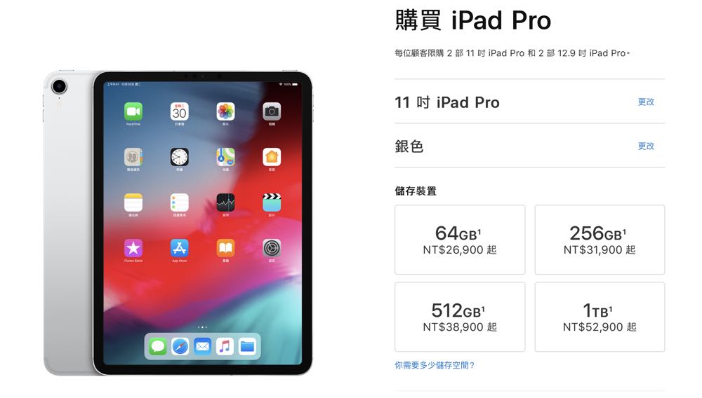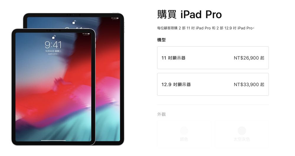 分為 11 吋與 12.9 吋兩種,售價在 NT$ 26,900 元起以及 NT$33,900 元起。